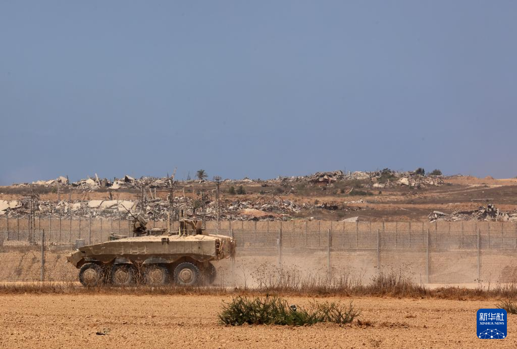 这是8月28日从加沙边境以色列一侧拍摄的以军装甲车。新华社发(吉尔·科恩·马根摄)