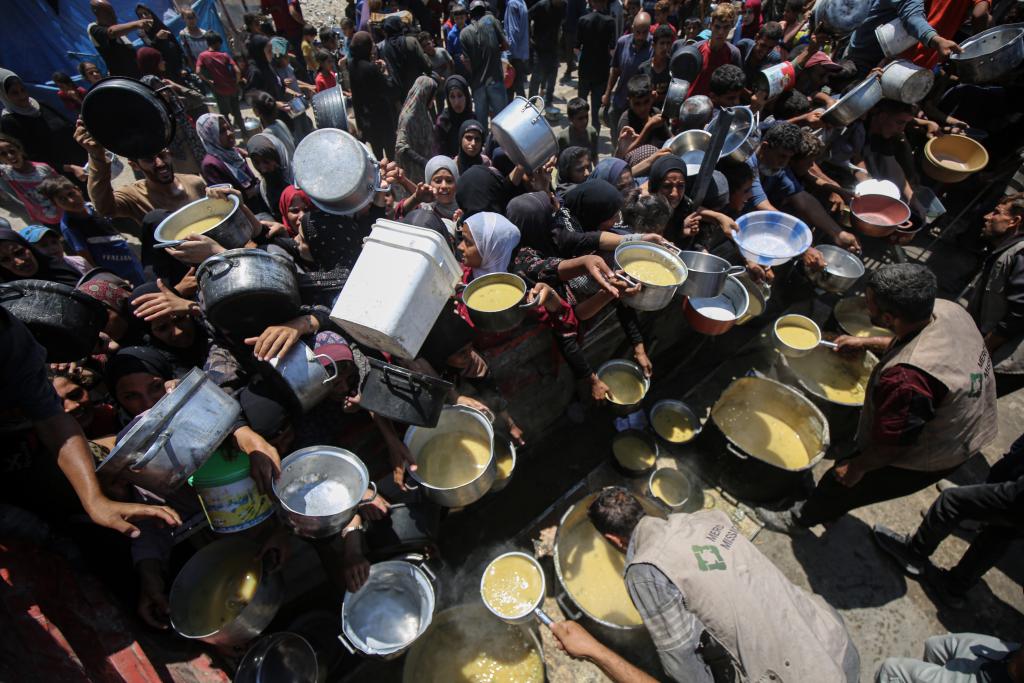8月2日,流离失所的巴勒斯坦人在加沙城等待领取食物。新华社发(里泽克·阿卜杜勒贾瓦德摄)