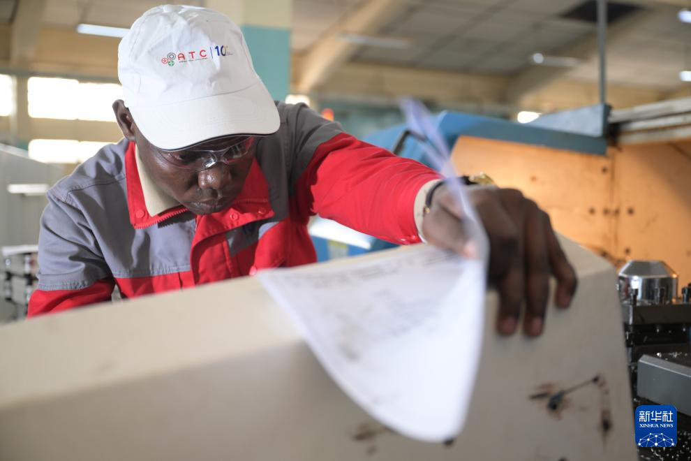 8月29日,在位于肯尼亚首都内罗毕的肯尼亚科技大学,一名第十届非洲职业技能挑战赛的参赛选手在数控机床前工作。新华社记者 杨光 摄