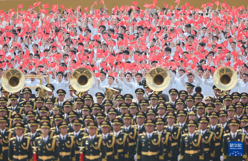 9月3日,纪念中国人民抗日战争暨世界反法西斯战争胜利80周年大会在北京隆重举行。这是中国人民解放军联合军乐团和合唱团。