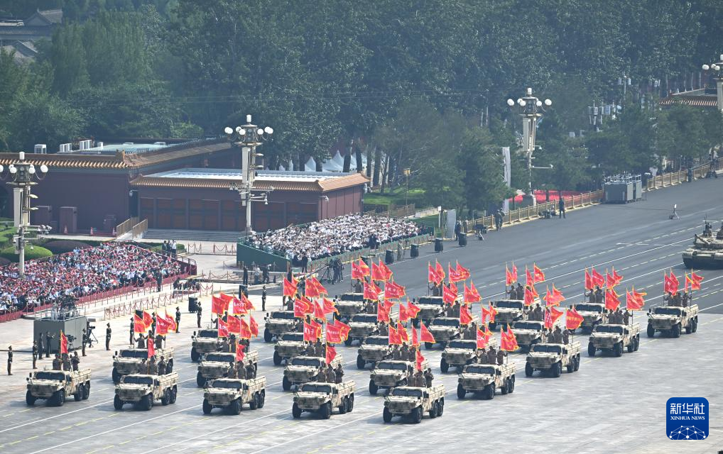 9月3日,纪念中国人民抗日战争暨世界反法西斯战争胜利80周年大会在北京隆重举行。这是战旗方队通过天安门广场。