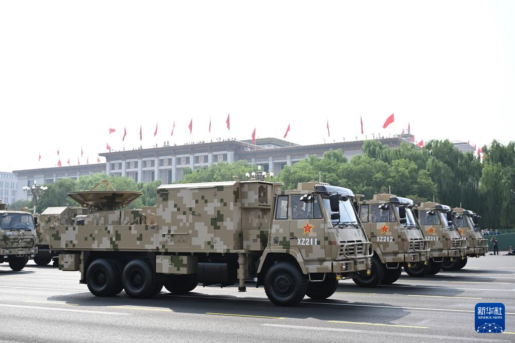 9月3日,纪念中国人民抗日战争暨世界反法西斯战争胜利80周年大会在北京隆重举行。这是信息支援方队接受检阅。