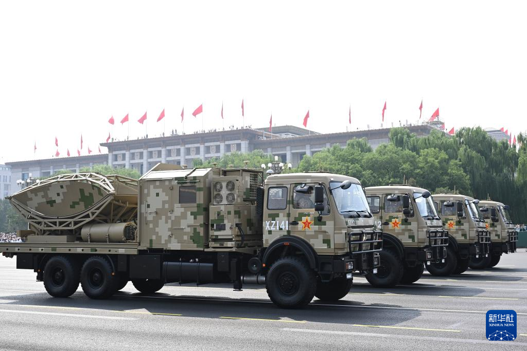 9月3日,纪念中国人民抗日战争暨世界反法西斯战争胜利80周年大会在北京隆重举行。这是信息支援方队接受检阅。