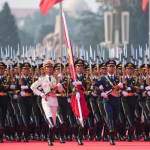 9月3日,纪念中国人民抗日战争暨世界反法西斯战争胜利80周年大会在北京隆重举行。这是国旗护卫队列队。