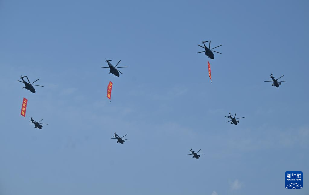 9月3日,纪念中国人民抗日战争暨世界反法西斯战争胜利80周年大会在北京隆重举行。这是特种机梯队从北京城区上空飞过。