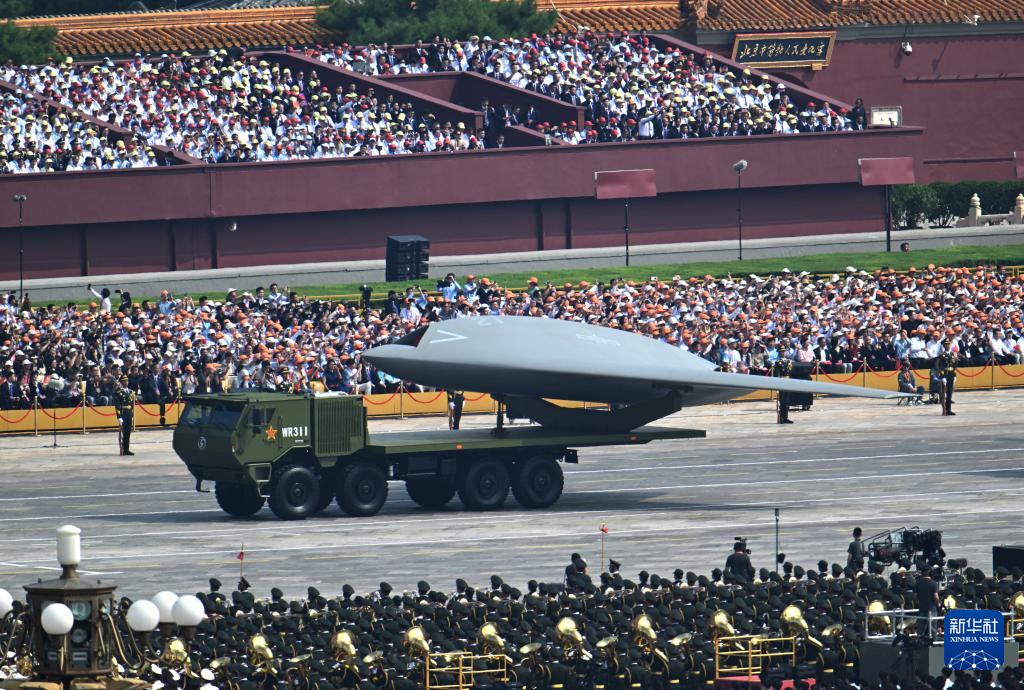 9月3日,纪念中国人民抗日战争暨世界反法西斯战争胜利80周年大会在北京隆重举行。这是空中无人作战方队接受检阅。