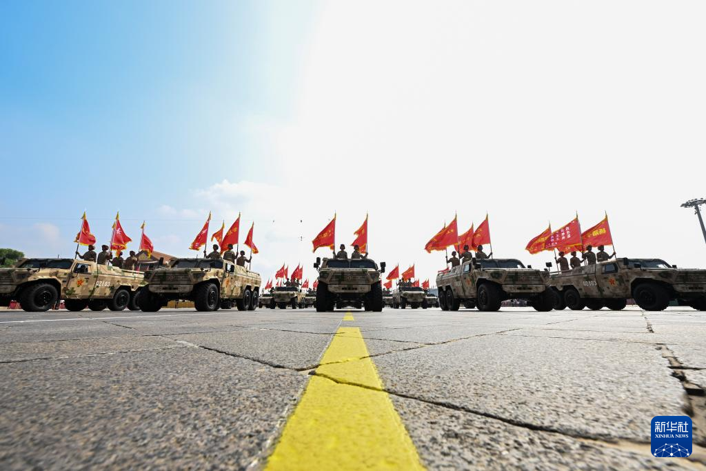 9月3日,纪念中国人民抗日战争暨世界反法西斯战争胜利80周年大会在北京隆重举行。这是战旗方队和装备方队接受检阅。