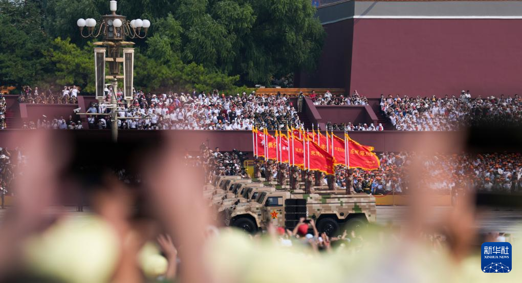 9月3日,纪念中国人民抗日战争暨世界反法西斯战争胜利80周年大会在北京隆重举行。这是战旗方队接受检阅。