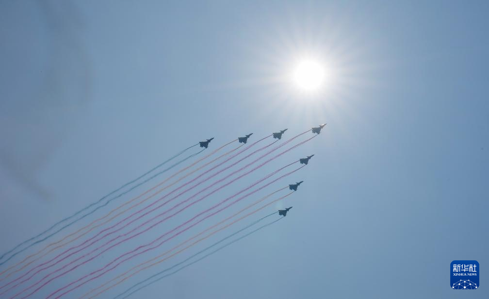 9月3日,纪念中国人民抗日战争暨世界反法西斯战争胜利80周年大会在北京隆重举行。这是教练机梯队接受检阅。