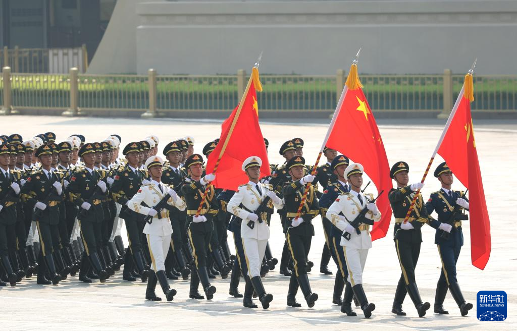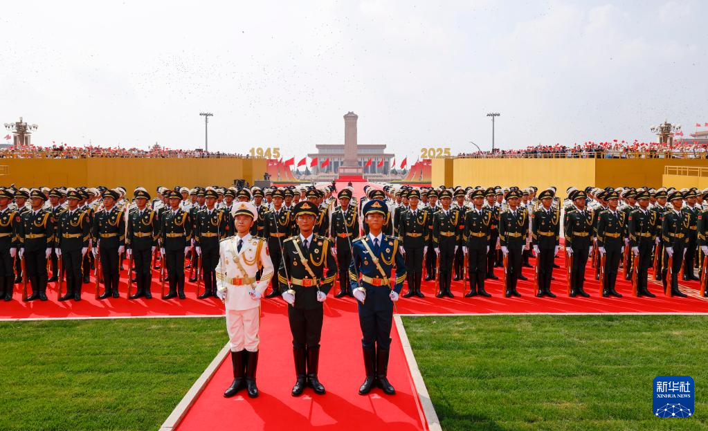 9月3日,纪念中国人民抗日战争暨世界反法西斯战争胜利80周年大会在北京隆重举行。这是国旗护卫队在天安门广场列队。