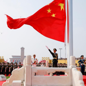 9月3日,纪念中国人民抗日战争暨世界反法西斯战争胜利80周年大会在北京隆重举行。这是天安门广场举行隆重的升国旗仪式。