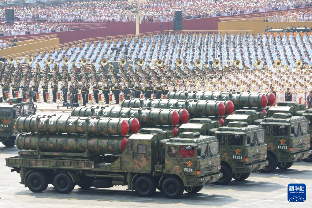 9月3日,纪念中国人民抗日战争暨世界反法西斯战争胜利80周年大会在北京隆重举行。这是舰载防空武器方队接受检阅。