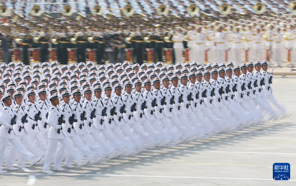 9月3日,纪念中国人民抗日战争暨世界反法西斯战争胜利80周年大会在北京隆重举行。这是海军方队接受检阅。