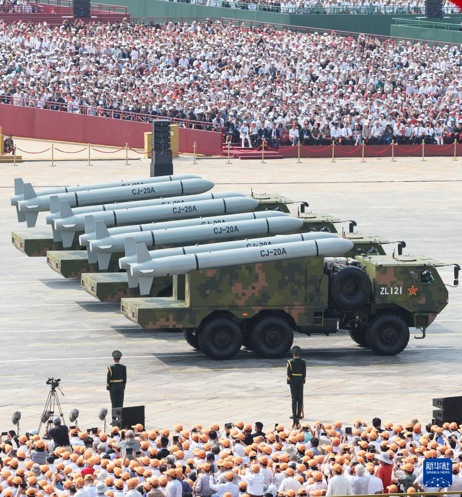 9月3日,纪念中国人民抗日战争暨世界反法西斯战争胜利80周年大会在北京隆重举行。这是反舰导弹方队接受检阅。