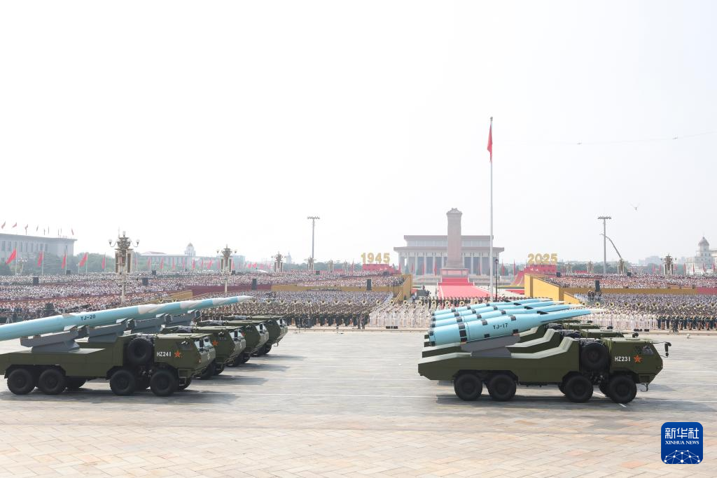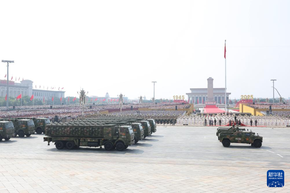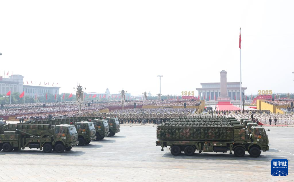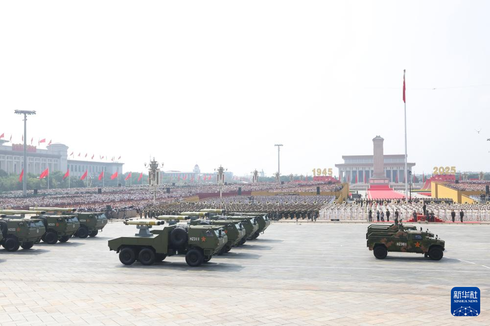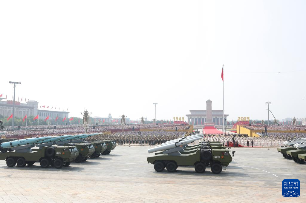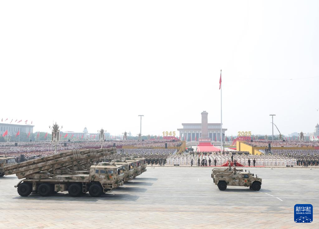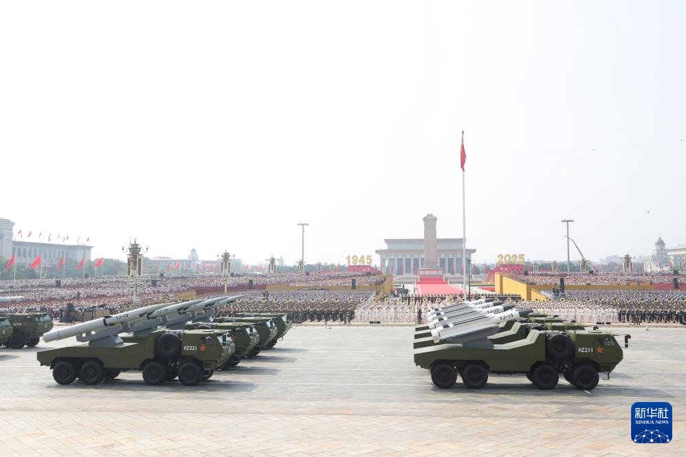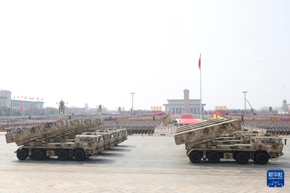9月3日,纪念中国人民抗日战争暨世界反法西斯战争胜利80周年大会在北京隆重举行。这是远程火炮方队接受检阅。
