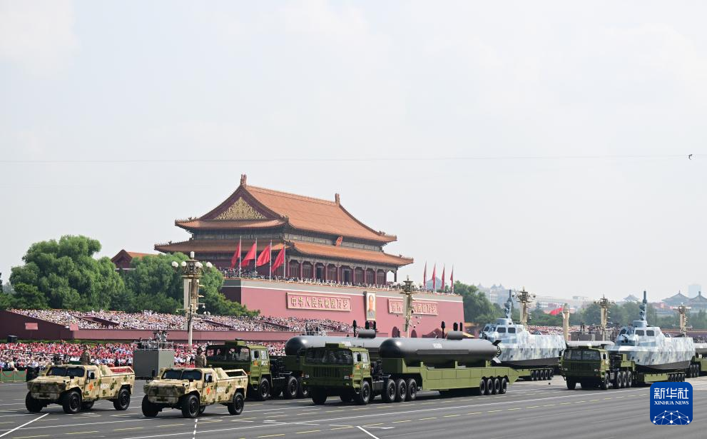 9月3日,纪念中国人民抗日战争暨世界反法西斯战争胜利80周年大会在北京隆重举行。这是水下兵器方队接受检阅。