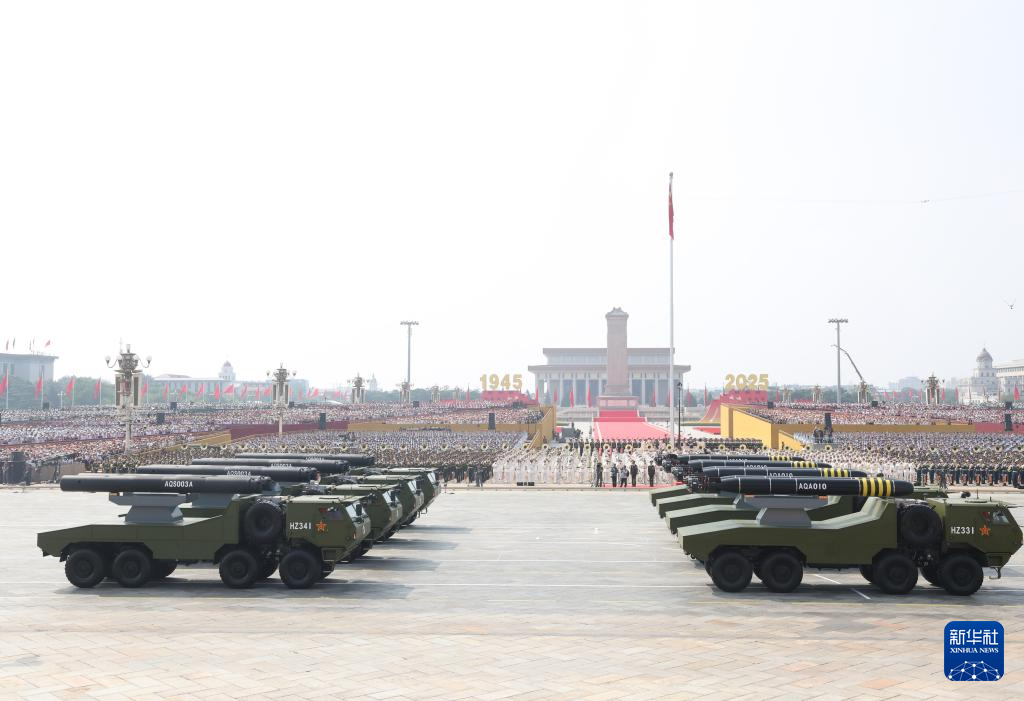 9月3日,纪念中国人民抗日战争暨世界反法西斯战争胜利80周年大会在北京隆重举行。这是高超声速导弹方队通过天安门广场。