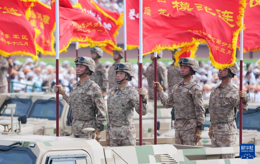 9月3日,纪念中国人民抗日战争暨世界反法西斯战争胜利80周年大会在北京隆重举行。这是战旗方队接受检阅。