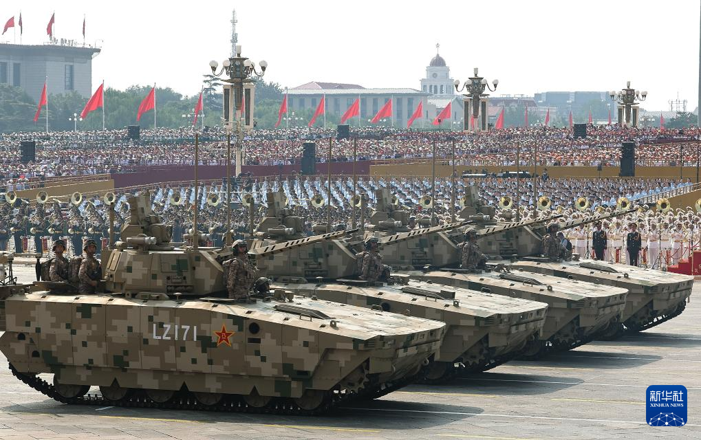9月3日,纪念中国人民抗日战争暨世界反法西斯战争胜利80周年大会在北京隆重举行。这是信息支援部队方队通过天安门广场。
