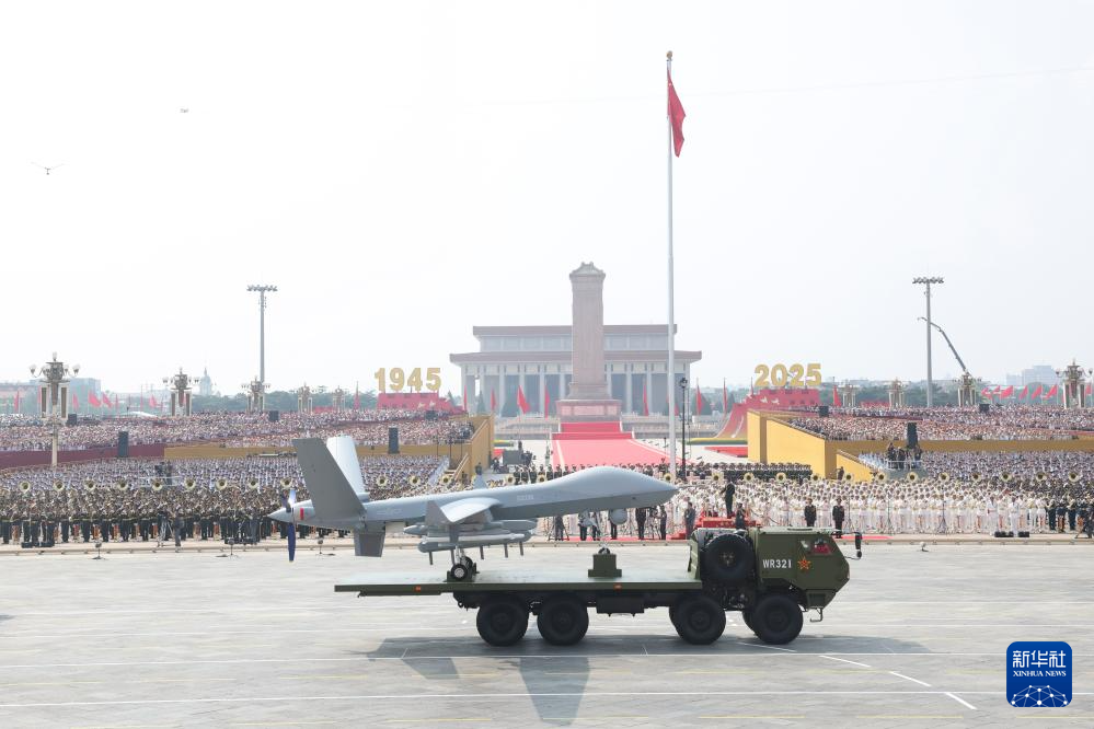 9月3日,纪念中国人民抗日战争暨世界反法西斯战争胜利80周年大会在北京隆重举行。这是空中无人作战方队接受检阅。