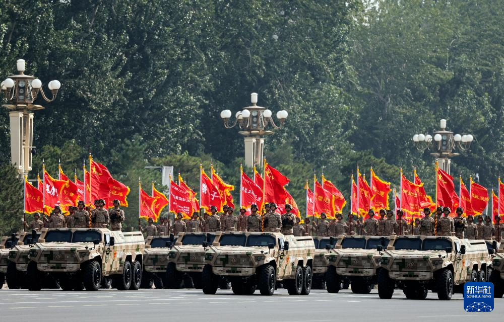 9月3日,纪念中国人民抗日战争暨世界反法西斯战争胜利80周年大会在北京隆重举行。这是战旗方队接受检阅。