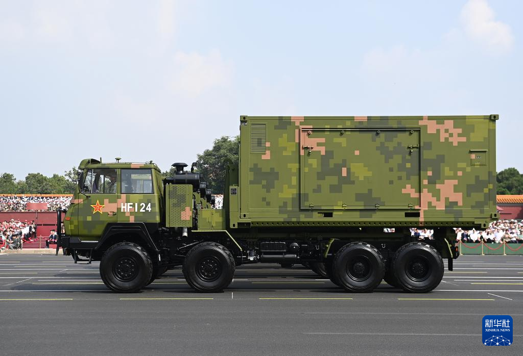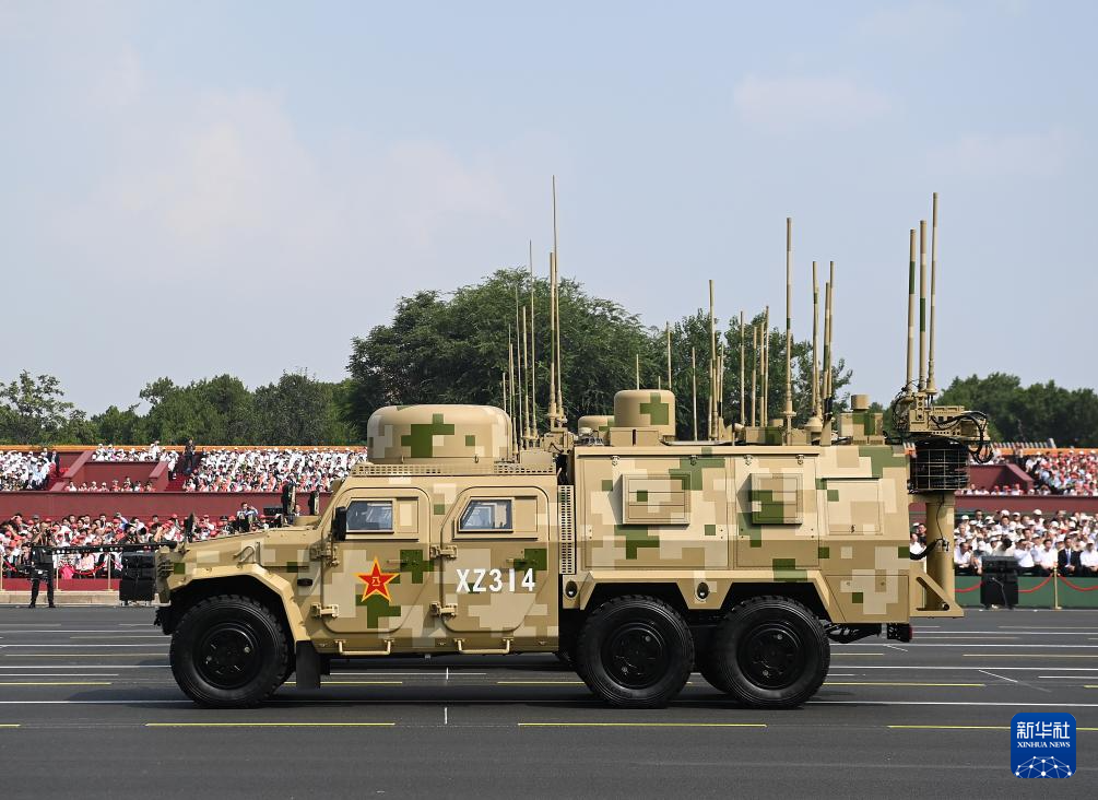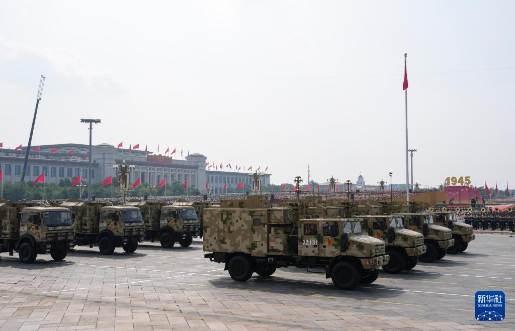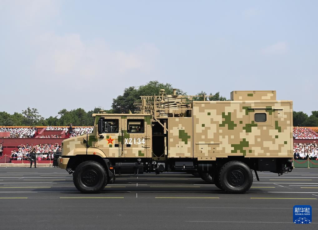 9月3日,纪念中国人民抗日战争暨世界反法西斯战争胜利80周年大会在北京隆重举行。这是电子对抗方队接受检阅。