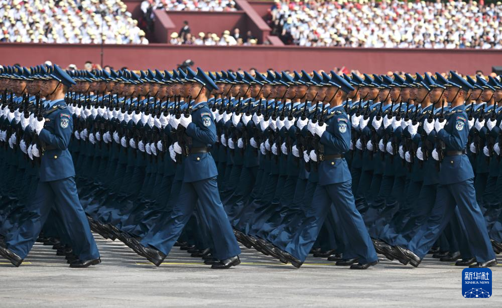 9月3日,纪念中国人民抗日战争暨世界反法西斯战争胜利80周年大会在北京隆重举行。这是空军方队接受检阅。