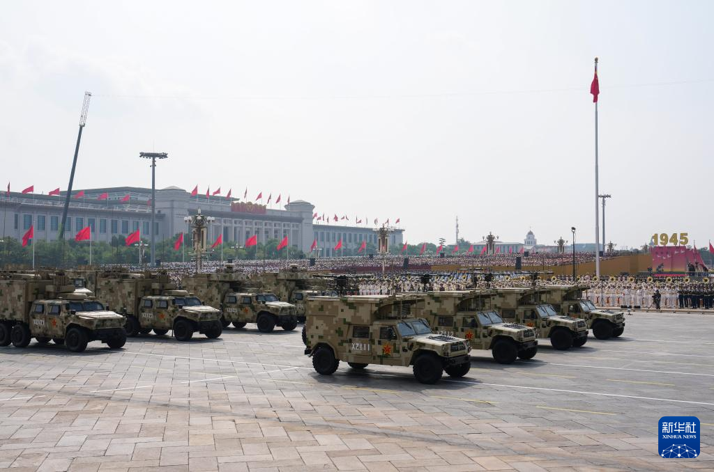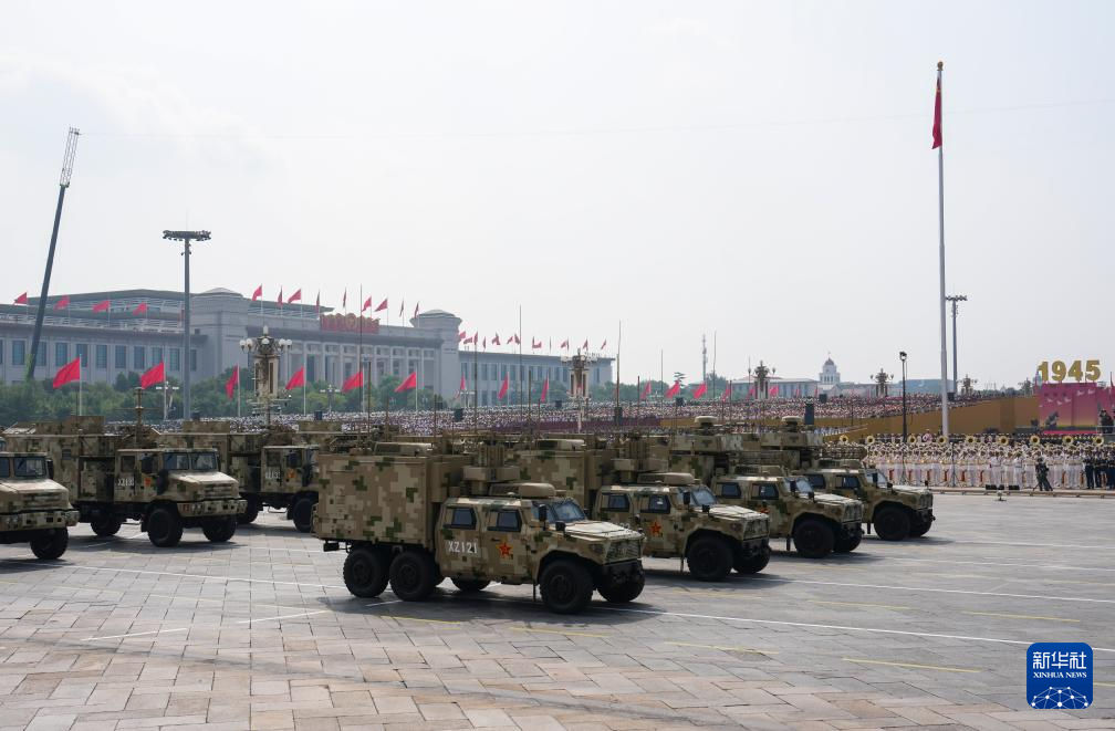 9月3日,纪念中国人民抗日战争暨世界反法西斯战争胜利80周年大会在北京隆重举行。这是信息支援方队接受检阅。