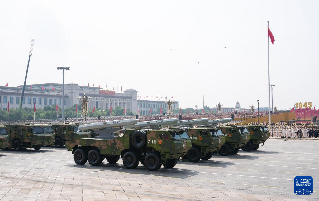 9月3日,纪念中国人民抗日战争暨世界反法西斯战争胜利80周年大会在北京隆重举行。这是巡航导弹方队接受检阅。