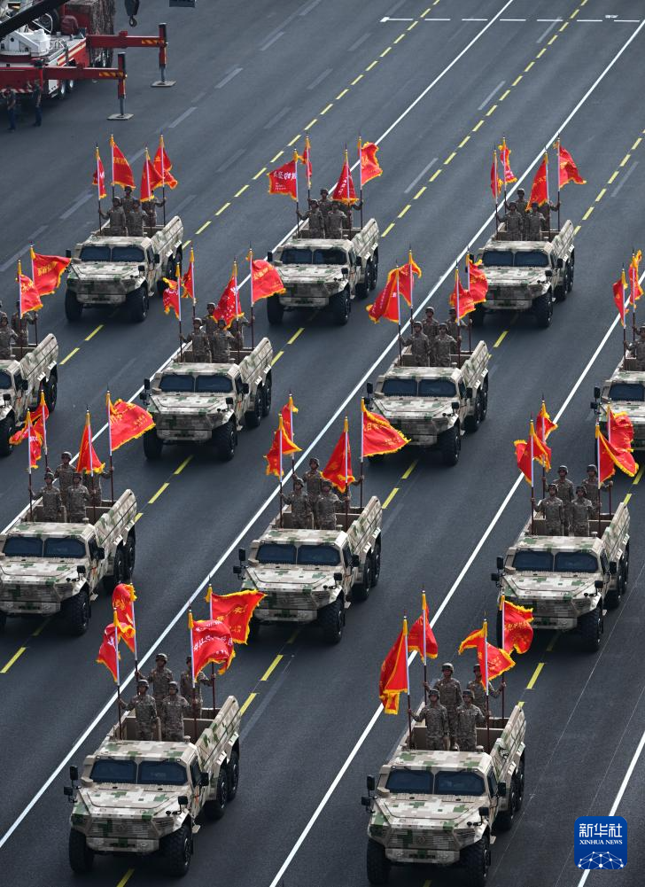 9月3日,纪念中国人民抗日战争暨世界反法西斯战争胜利80周年大会在北京隆重举行。这是战旗方队接受检阅。