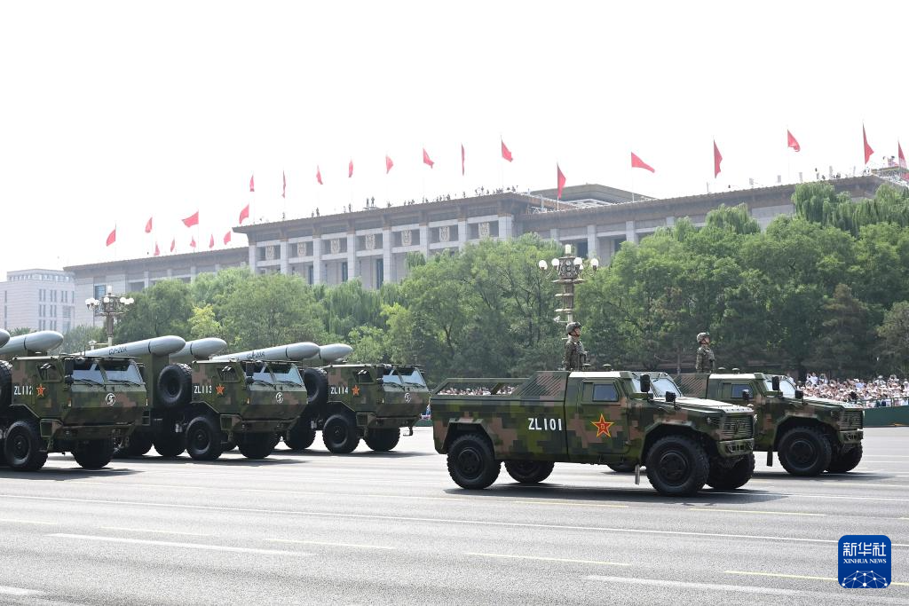 9月3日,纪念中国人民抗日战争暨世界反法西斯战争胜利80周年大会在北京隆重举行。这是装备方队接受检阅。