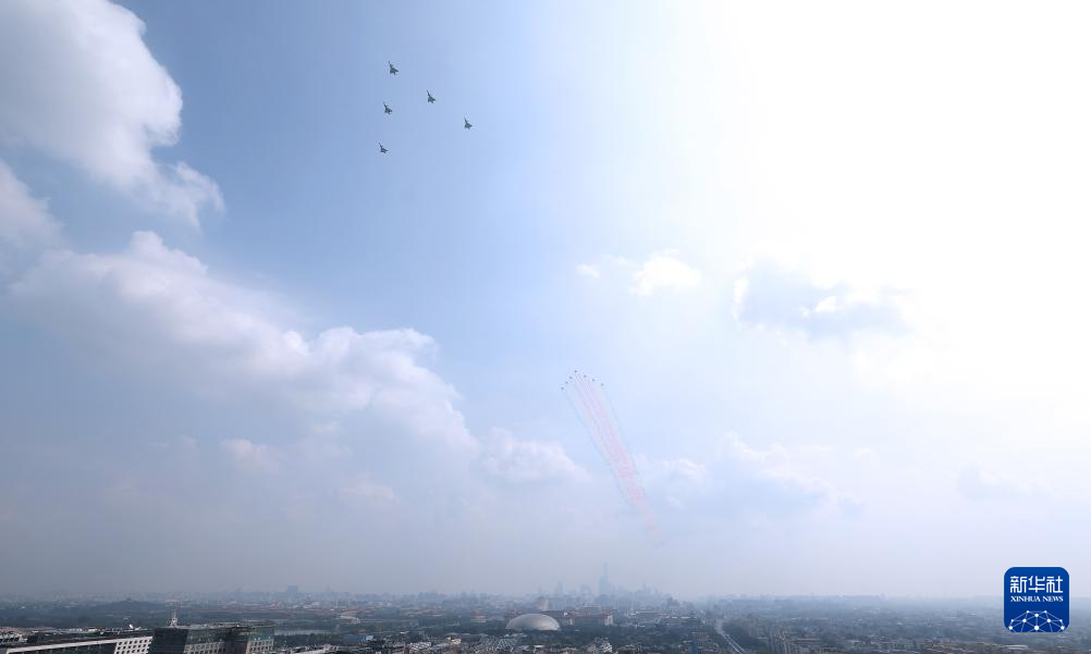 9月3日,纪念中国人民抗日战争暨世界反法西斯战争胜利80周年大会在北京隆重举行。这是空中梯队接受检阅。