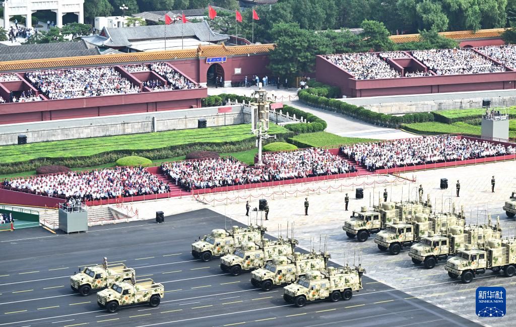 9月3日,纪念中国人民抗日战争暨世界反法西斯战争胜利80周年大会在北京隆重举行。这是信息支援方队通过天安门广场。