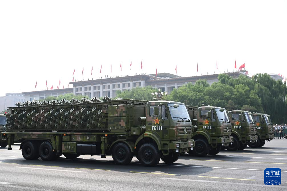 9月3日,纪念中国人民抗日战争暨世界反法西斯战争胜利80周年大会在北京隆重举行。这是舰载防空武器方队接受检阅。