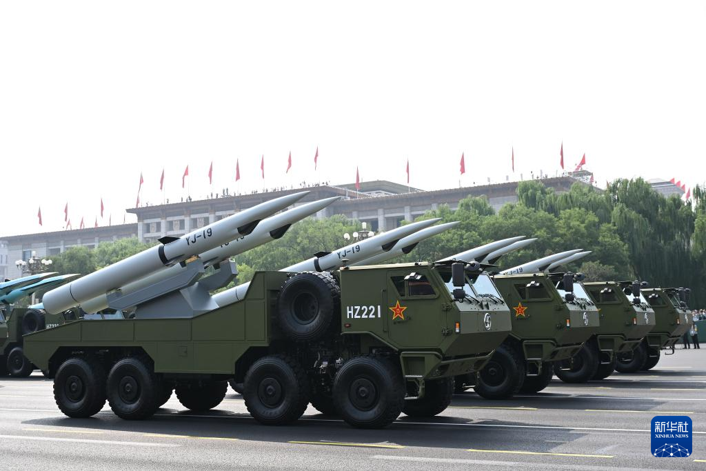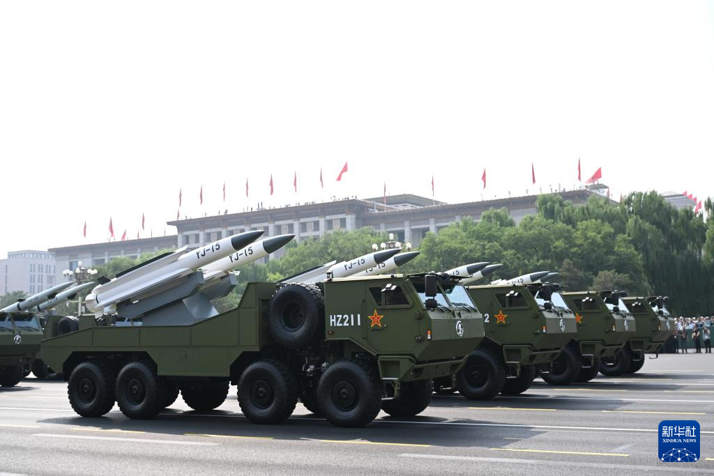 9月3日,纪念中国人民抗日战争暨世界反法西斯战争胜利80周年大会在北京隆重举行。这是反舰导弹方队接受检阅。
