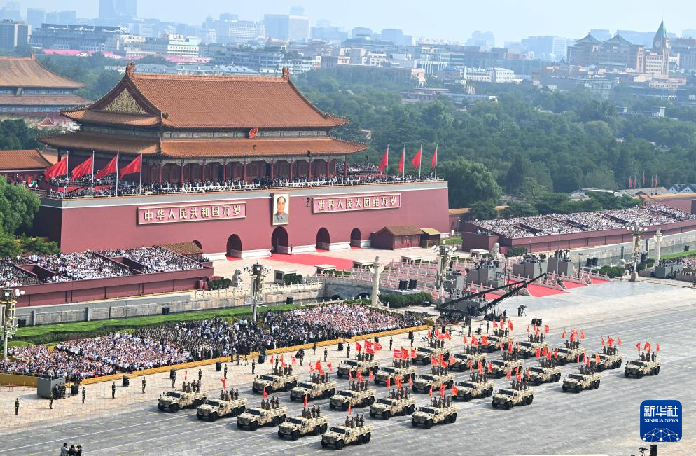 9月3日,纪念中国人民抗日战争暨世界反法西斯战争胜利80周年大会在北京隆重举行。这是远程火炮方队接受检阅。