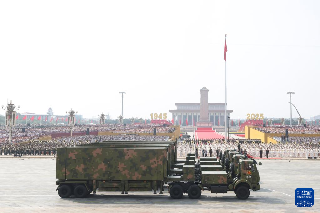 9月3日,纪念中国人民抗日战争暨世界反法西斯战争胜利80周年大会在北京隆重举行。这是高超声速导弹方队接受检阅。