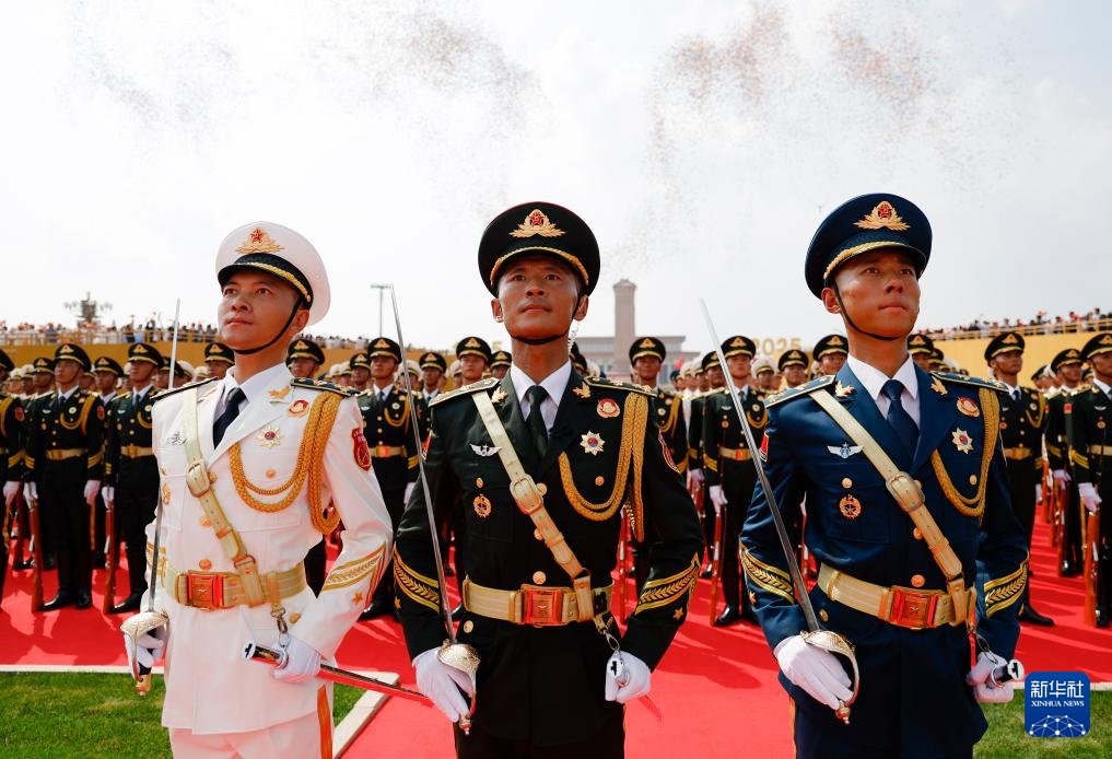 9月3日,纪念中国人民抗日战争暨世界反法西斯战争胜利80周年大会在北京隆重举行。这是国旗护卫队在天安门广场列队。