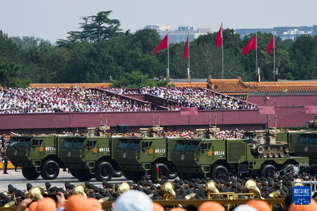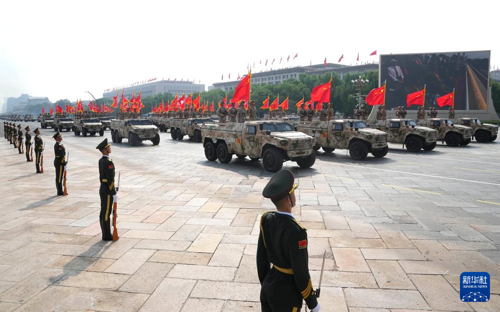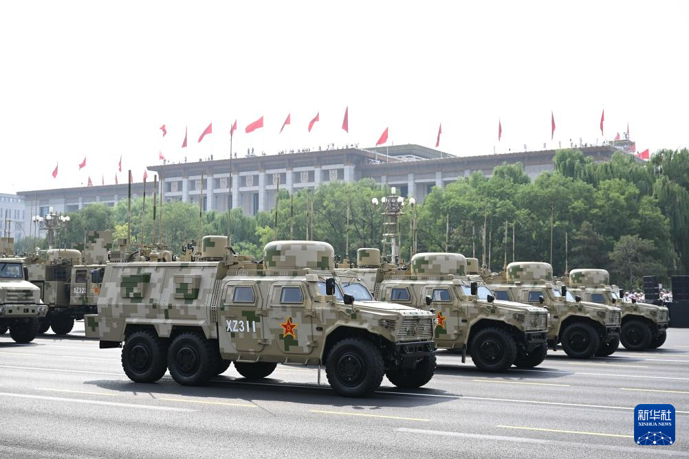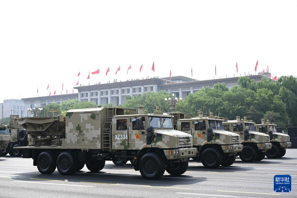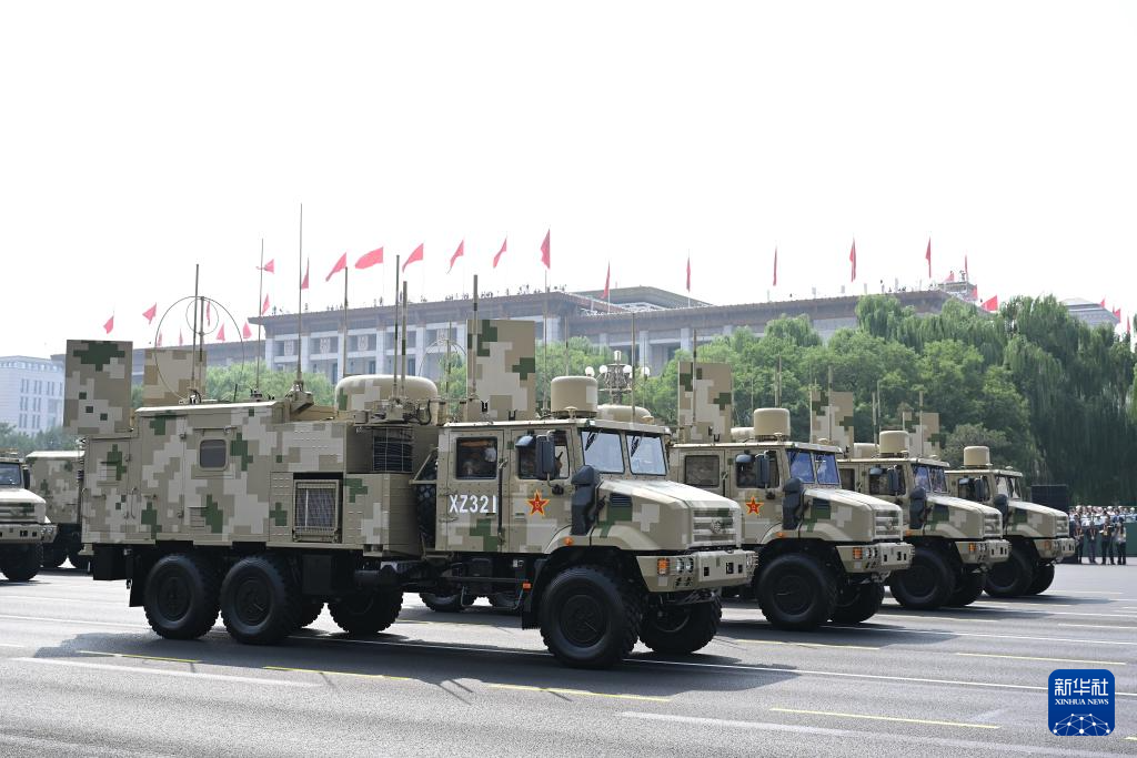 9月3日,纪念中国人民抗日战争暨世界反法西斯战争胜利80周年大会在北京隆重举行。这是信息支援方队通过天安门广场。