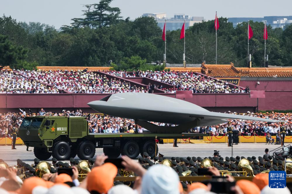 9月3日,纪念中国人民抗日战争暨世界反法西斯战争胜利80周年大会在北京隆重举行。这是空中无人作战方队接受检阅。