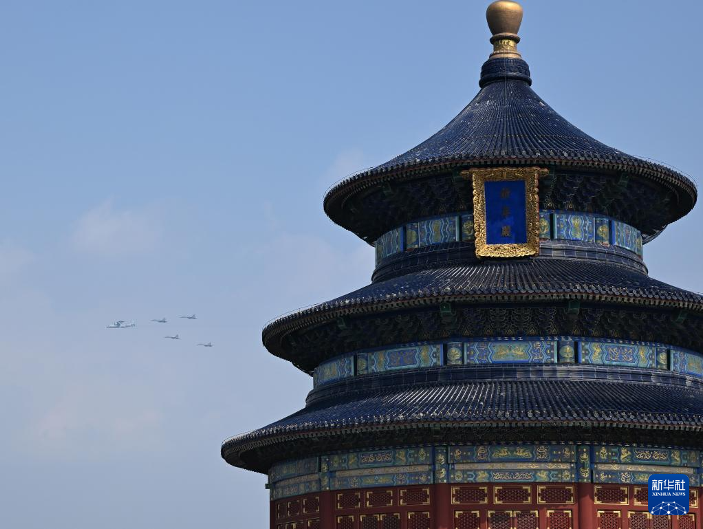 9月3日,纪念中国人民抗日战争暨世界反法西斯战争胜利80周年大会在北京隆重举行。这是在北京天坛公园拍摄的歼击机梯队。