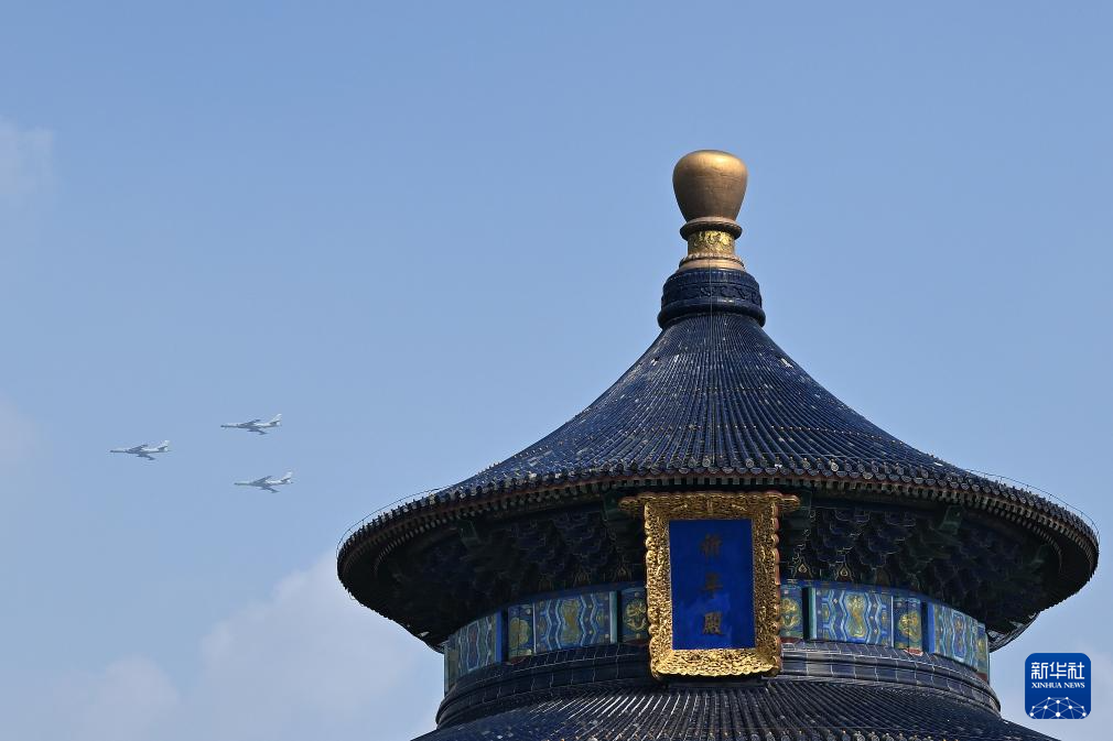 9月3日,纪念中国人民抗日战争暨世界反法西斯战争胜利80周年大会在北京隆重举行。这是在北京天坛公园拍摄的轰炸机梯队。