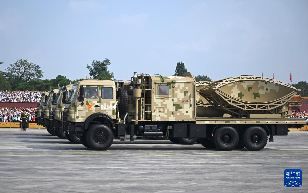 9月3日,纪念中国人民抗日战争暨世界反法西斯战争胜利80周年大会在北京隆重举行。这是信息支援方队接受检阅。