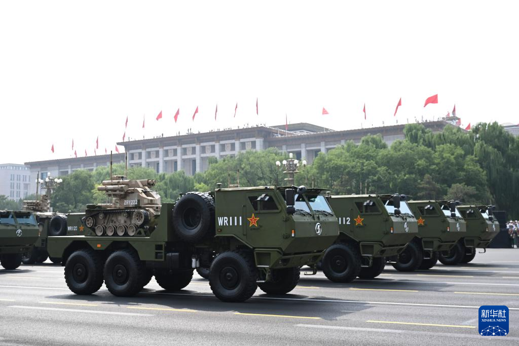 9月3日,纪念中国人民抗日战争暨世界反法西斯战争胜利80周年大会在北京隆重举行。这是陆上无人作战方队接受检阅。