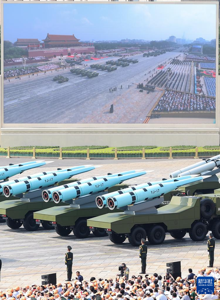 9月3日,纪念中国人民抗日战争暨世界反法西斯战争胜利80周年大会在北京隆重举行。这是反舰导弹方队接受检阅。