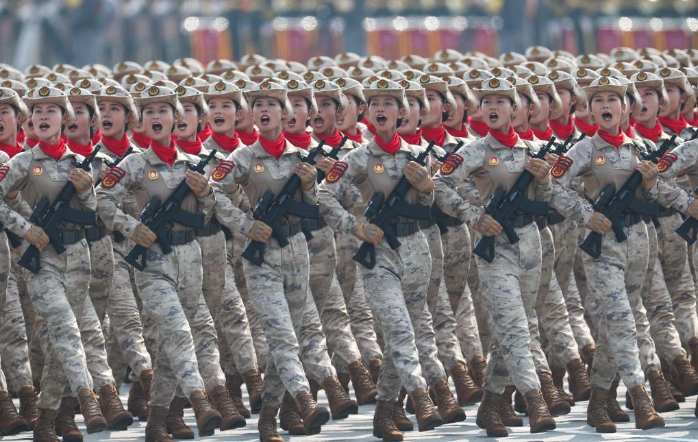这是民兵方队接受检阅。新华社记者 毛思倩 摄