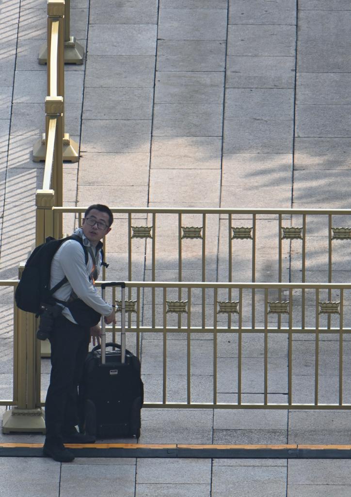 新华社记者江文耀:“我当时准备换点位,询问是否能把摄影器材箱放在这里。朋友说我看起来像在北京站找路的迷茫游客。”