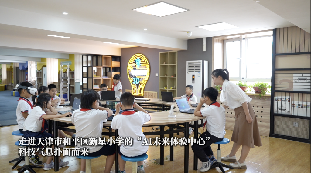 走进天津市和平区新星小学的“AI未来体验中心”,科技气息扑面而来。VR建模、机械臂操控、AI对话等互动体验妙趣横生,学生们参与体验各类智能课程,点亮科学梦想。