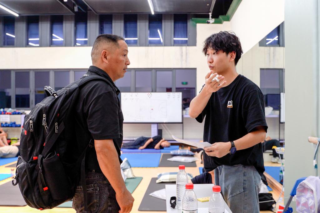 “同住的家长都很安静,我昨晚睡得特别安稳。”在临时“宿舍”的入住体验超出了新生家长宋喜青的预期,不用为住宿问题烦恼,不用来回奔走校内校外,他也有了更多时间陪伴孩子,闲下来时还会在体育馆内打打乒乓球。