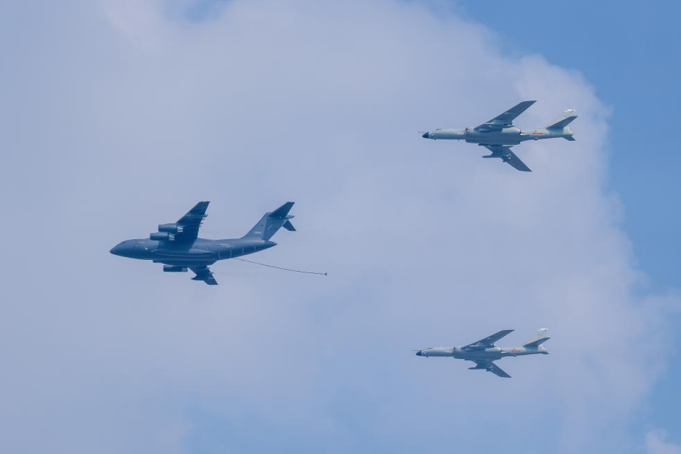 加受油机梯队分为3个中队,最先飞过的是一架运油-20A、两架轰-6N,二中队的一架运油-20A、两架歼-16紧随其后,三中队为一架运油-20A、两架歼-20。加受油机梯队最大的看点是运油-20A与国产新型远程战略轰炸机轰-6N以预加油状态公开亮相。